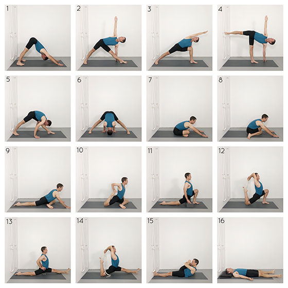 Generally we tend to think of seated poses and forward bends as being effective in terms of hip opening yoga poses. This weeks advanced class on Yoga Selection shows how some of the backbend variations can also be used to access the hips. This class heads in the direction of eka pada rajakapotasana (pigeon pose). Several of the different variations of this pose are included as well as some related and overlapping poses such as vamadevasana and hanumanasana. These poses are extremely effective at focusing on the hips and surrounding muscles such as the gluteals, psoas and quadriceps. Although these poses are challenging for most practitioners, they can be easily adapted to suit people with stiffer bodies. This class shows how to approach these poses in order to emphasise their hip opening benefits. Preparatory variations are also included that gradually build towards the full pose.