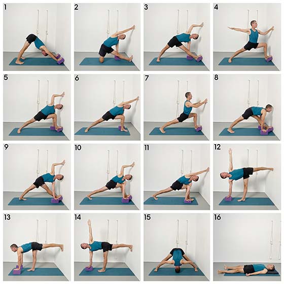 This class features a full sequence of standing pose variations using a wall. A wall can be used for a variety of different outcomes. In a recent class we were using it to help preserve energy. This week we are using the wall to assist with balance and give you an improved ability to lengthen and turn your spine. Some of the twisting actions that are naturally present in standing poses can be emphasised with this approach. In addition to using a wall, some of the poses in this class use a block to elevate your front foot. This can be therapeutic for sore knees if necessary but can also help to bypass stiffness in your hips and give you improved access to twisting actions. This energetic sequence includes twelve key asanas from the standing pose group.