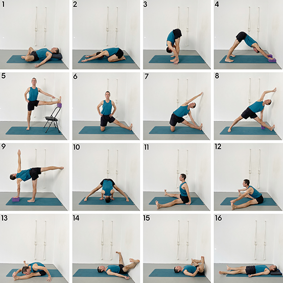 Mat, chair, bolster, 2 blankets, 2 blocks, belt.