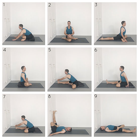 Sukhasana, janu sirsasana, ardha baddha padma paschimottanasana.