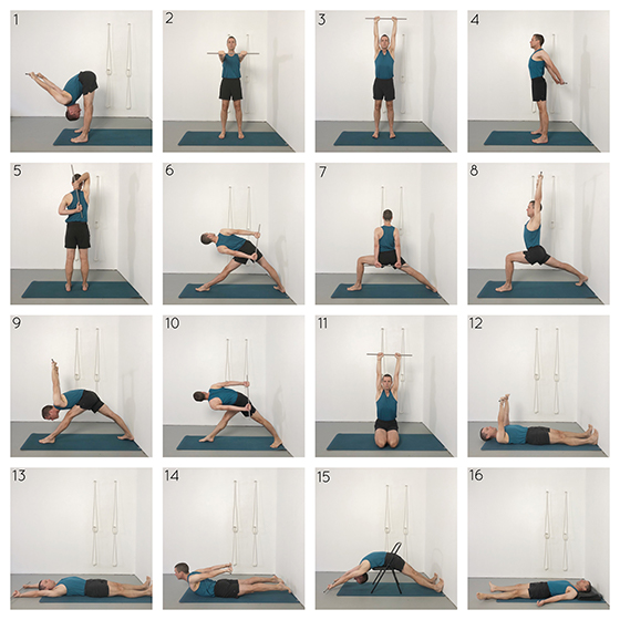 Dowling yoga sequence. This class demonstrates ways of using a length of dowling as a yoga prop. This piece of equipment is often readily available to home yoga practitioners. Common household items can be improvised if necessary. Dowling can be particularly useful for people working with stiff or injured shoulders. This sequence initially includes shoulder opening variations of standing poses. It then heads in the direction of backbends. Dowling is used in each pose to help support your shoulders and improve mobility where necessary.