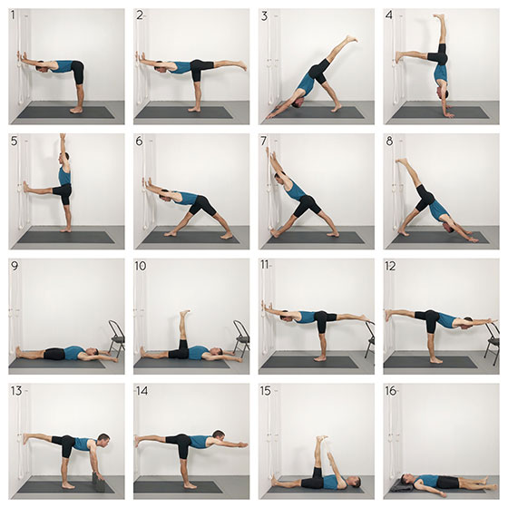 This class explores the basic shape of the standing pose virabhadrasana III and rotates it in different directions to highlight connections with other straight leg poses. The class revolves this distinctive right angle shape in a 360 degree direction to link with related standing poses, inversions and reclining poses. Connections are made with poses such as parsvottanasana, utthita hasta padangusthasana, adho mukha vrksasana and supta padangusthasana. The class will help you to make connections and link understanding between the various pose groups.