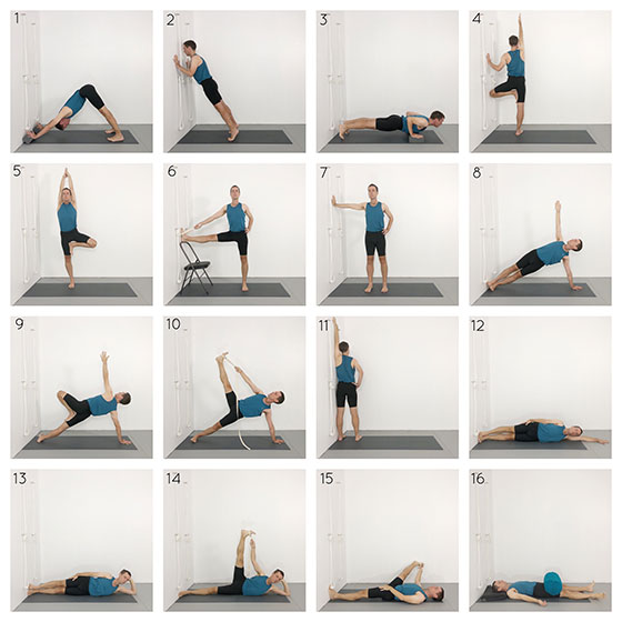 This class focuses on the poses vasisthasana and anantasana. These poses are also covered in this weeks advanced class, but in this sequence they are approached from the perspective of people who are less experienced with them. Chaturanga dandasana is practiced initially to gain confidence in using your arms to support your body weight. The wall based variation will be helpful if you are not yet able to lift from the floor. Vrksasana is then included to develop the hip opening that will lead towards vasisthasana 2. From there utthita hasta padangusthasana 2 is practiced to learn the final leg action that will eventually be used in this pose and then in anantasana. This final pose can also be therapeutic for shoulders. Some specific shoulder variations of anantasana are also included.