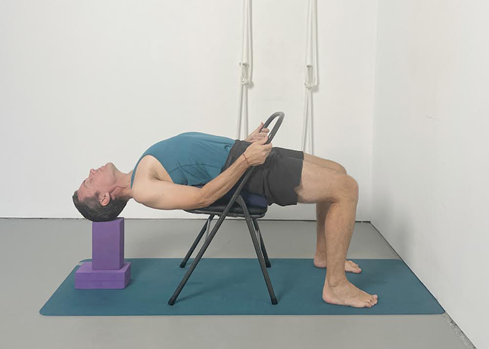 This week we are revisiting the kneeling backbend ustrasana (camel pose). The class highlights fundamental actions of the classical pose and also explores some supported variations. It contains some chair adaptations that will help to support your neck and improve opening in your thoracic spine. The class progressively develops towards a classical practice of ustrasana without the assistance of props, but emphasises ways of doing this without placing strain on your lower back or neck. It will have therapeutic benefits but will also be beneficial for deepening your general understanding of this energising backbend.