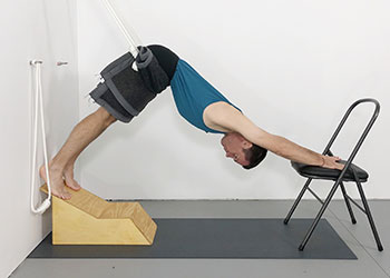This can be a great way of bringing energy and lightness into your practice. However, if the process of entering the movement is rushed, without preliminary stages being considered, the pose can also place a sudden and intense work load on your shoulders. This class shares some commonly practiced ways of gradually transitioning towards the final position. Initially some distance is maintained between your feet and the wall to soften the weight bearing aspect of the pose. Keeping your elbows bent as you enter and eventually exit the pose gives you more incremental control as to how your shoulders are drawn back by the ropes, and also adds a biceps strengthening aspect to the pose.