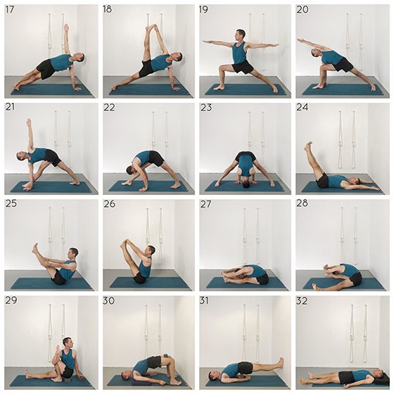 This class features a total body sequence that includes poses from each of the main asana groups. It runs for a longer time duration and includes a variety of inversions, standing poses, forward bends, backbends, twists and restorative poses. It also includes some miscellaneous balancing and abdominal strengthening poses like urdhva prasarita padasana, vasisthasana and ubhaya padangusthasana. Surya namaskar is also featured. This type of class targets your whole body and is ideal for building momentum in your home yoga practice. It balances strength with mobility, energising poses with calming poses.