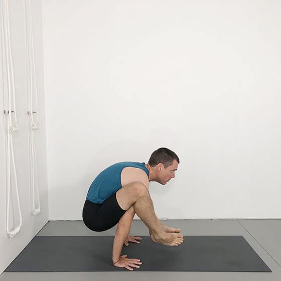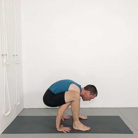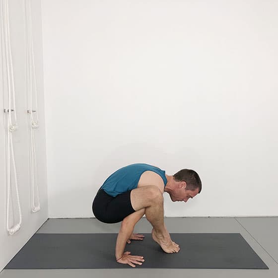 This pose will benefit from you making yourself as compact as possible with your knees as high as possible on your arms. To help with this: